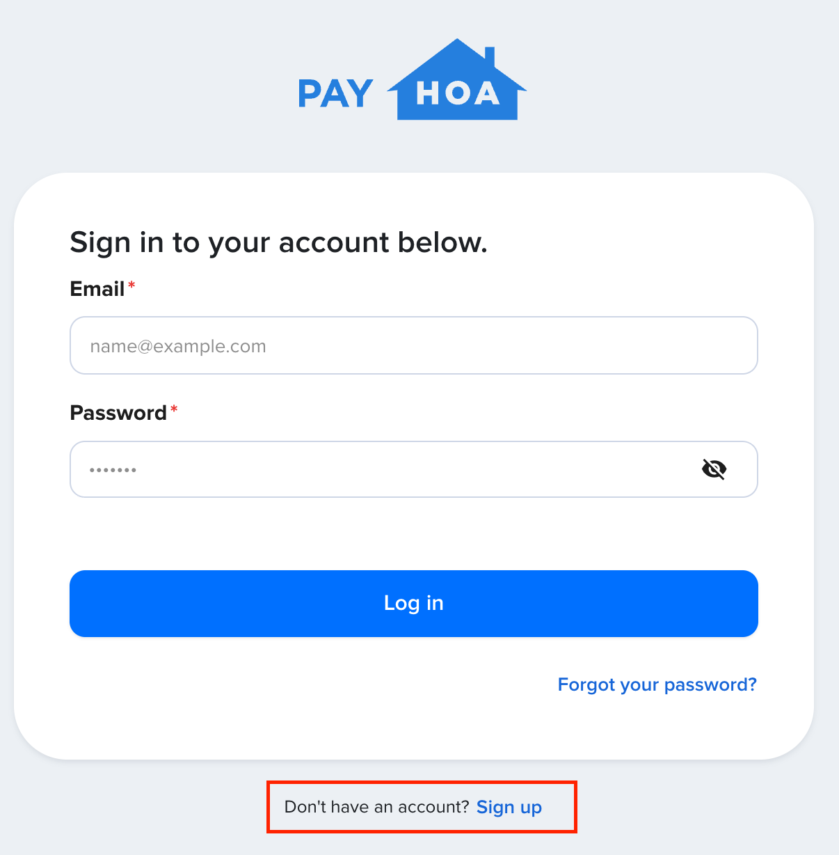 To set up your account, head to https://app.payhoa.com/auth/login and click the link to Sign Up